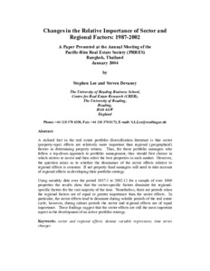 Lee, S. and Devaney, S., (2004) Changes in the relative importance of sector and regional factors: 1987-2002. Working Papers in Real Estate & Planning. 05/04. Working Paper. University of Reading, Reading. pp15.