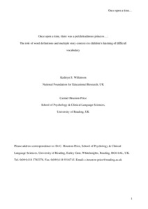 the role of word definitions and multiple story contexts in children’s learning of difficult vocabulary.