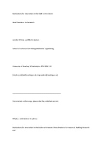 Whyte, J. and Sexton, M. (2011) Motivations for innovation in the built environment: new directions for research. Building Research and Information, 39 (5). pp. 473-482. ISSN 1466-4321 doi: 10.1080/09613218.2011.592268