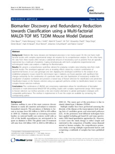 Biomarker discovery and redundancy reduction towards classification using a multi-factorial MALDI-TOF MS T2DM mouse model dataset.