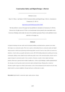 As digital technologies become widely used in designing buildings and infrastructure, questions arise about their impacts on construction safety. This review explores relationships between construction safety and digital design practices with the aim of fostering and directing further research. It surveys state-of-the-art research on databases, virtual reality, geographic information systems, 4D CAD, building information modeling and sensing technologies, finding various digital tools for addressing safety issues in the construction phase, but few tools to support design for construction safety. It also considers a literature on safety critical, digital and design practices that raises a general concern about ‘mindlessness’ in the use of technologies, and has implications for the emerging research agenda around construction safety and digital design. Bringing these strands of literature together suggests new kinds of interventions, such as the development of tools and processes for using digital models to promote mindfulness through multi-party collaboration on safety