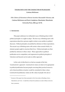 McKinnon, C. (2003) Tolerance and the character of pluralism. In: McKinnon, C. and Castiglione, D. (eds.) The Culture of Toleration in Diverse Societies. Manchester University Press, Manchester, pp. 54-70. ISBN 9780719080623