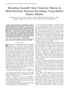 Revealing ensemble state transition patterns in multi-electrode neuronal recordings using hidden Markov models.