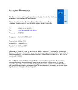 | Uncontrolled Keywords | Video feedback; Feed-forward; Web 2.0; Technology-assisted learning; Assessment |