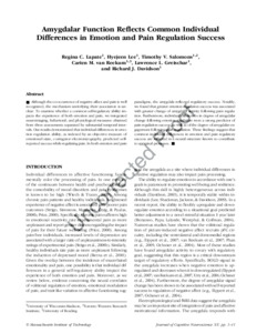 Amygdalar function reflects common individual differences in emotion and pain regulation success