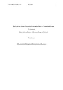 The evolving group: towards a prescriptive theory of intentional group development.