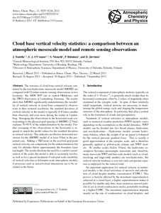 Tonttila, J., O'Connor, E. J., Niemelä, S., Räisänen, P. and Järvinen, H. (2011) Cloud-base vertical velocity statistics: a comparison between an atmospheric mesoscale model and remote sensing observations. Atmospheric Chemistry and Physics, 11 (17). pp. 9207-9218. ISSN 1680-7316 doi: 10.5194/acp-11-9207-2011
