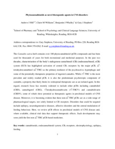 Hill, A. J., Williams, C. M. ORCID: https://orcid.org/0000-0003-4452-671X, Whalley, B. J. and Stephens, G. J. ORCID: https://orcid.org/0000-0002-8966-4238 (2012) Phytocannabinoids as novel therapeutic agents in CNS disorders. Pharmacology & Therapeutics, 133 (1). pp. 79-97. ISSN 0163-7258 doi: 10.1016/j.pharmthera.2011.09.002