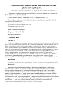 Edwards, A. D. ORCID: https://orcid.org/0000-0003-2369-989X, Reis, N. M., Slater, N. K. H. and Mackley, M. R. (2011) A simple device for multiplex ELISA made from melt-extruded plastic microcapillary film. Lab on a Chip, 11 (24). pp. 4267-4273. ISSN 1473-0197 doi: 10.1039/C0LC00357C