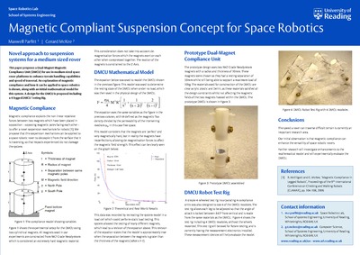 Parfitt, M. and McKee, G. (2011) Magnetic compliant suspension concept for space robotics. In: ASTRA 2011: 11th Symposium on Advanced Space Technologies in Robotics and Automation, 12-14 April 2011, Noordwijk, the Netherlands.