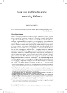Porter, P. (2009) Long wars and long telegrams: containing Al Qaeda. International Affairs, 85 (2). pp. 285-305. ISSN 1468-2346 doi: 10.1111/j.1468-2346.2009.00794.x