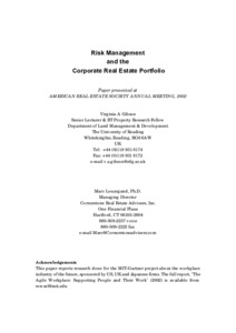 Gibson, G. and Louargand, M., (2002) Risk management and the corporate real estate portfolio. Working Papers in Land Management & Development. 02/02. Working Paper. University of Reading, Reading. pp17.
