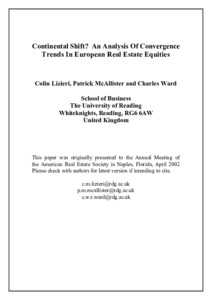 Lizieri, C., Ward, C. and McAllister, P., (2002) Continental shift? An analysis of convergence trends in European real estate equities. Working Papers in Land Management & Development. 06/02. Working Paper. University of Reading, Reading. pp28.