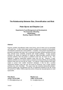 Byrne, P. and Lee, S., (2001) The relationship between size, diversification and risk. Working Papers in Land Management and Development. 07/01. Working Paper. University of Reading, Reading. pp18.