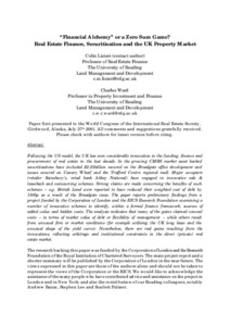 Lizieri, C. and Ward, C., (2001) “Financial alchemy” or a zero sum game? Real estate finance, securitisation and the UK property market. Working Papers in Land Management & Development. 09/01. Working Paper. University of Reading, Reading. pp22.