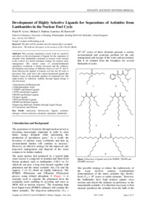 Uncontrolled Keywords heterocycles; ligands; actinides; solvent extraction; lanthanides