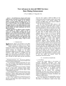 Aircraft Maintenance, Repair and Overhaul (MRO) agencies rely largely on row-data based quotation systems to select the best suppliers for the customers (airlines). The data quantity and quality becomes a key issue to determining the success of an MRO job, since we need to ensure we achieve cost and quality benchmarks. This paper introduces a data mining approach to create an MRO quotation system that enhances the data quantity and data quality, and enables significantly more precise MRO job quotations. Regular Expression was utilized to analyse descriptive textual feedback (i.e. engineer’s reports) in order to extract more referable highly normalised data for job quotation. A text mining based key influencer analysis function enables the user to proactively select sub-parts, defects and possible solutions to make queries more accurate. Implementation results show that system data would improve cost quotation in 40% of MRO jobs, would reduce service cost without causing a drop in service quality.