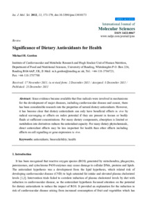 Gordon, M. (2012) Significance of dietary antioxidants for health. International Journal of Molecular Sciences, 13 (1). pp. 173-179. ISSN 1422-0067 doi: 10.3390/ijms13010173