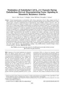 Dora, K. A., Gallagher, N. T., McNeish, A. and Garland, C. J. (2008) Modulation of endothelial cell KCa3.1 Channels during endothelium-derived hyperpolarizing factor signaling in mesenteric resistance arteries. Circulation Research, 102 (10). pp. 1427-1255. ISSN 0009-7330 doi: 10.1161/CIRCRESAHA.108.172379