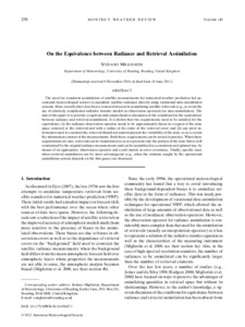 Migliorini, S. (2012) On the equivalence between radiance and retrieval assimilation. Monthly Weather Review, 140 (1). pp. 258-265. ISSN 0027-0644 doi: 10.1175/MWR-D-10-05047.1