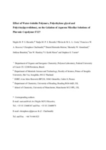 Effect of water-soluble polymers, polyethylene glycol and poly(vinylpyrrolidone),on the gelation of aqueous micellar solutions of Pluronic copolymer F127.