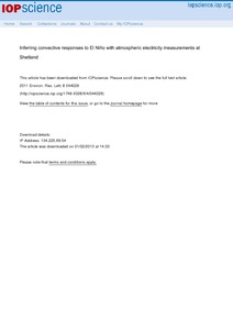 Harrison, G. ORCID: https://orcid.org/0000-0003-0693-347X, Joshi, M. and Pascoe, K. (2011) Inferring convective responses to El Niño with atmospheric electricity measurements at Shetland. Environmental Research Letters, 6 (4). 044028. ISSN 1748-9326 doi: 10.1088/1748-9326/6/4/044028