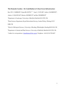 Cameron, R., Blanusa, T., Taylor, J., Salisbury, A., Halstead, A., Henricot, B. and Thompson, K. (2012) The domestic garden: its contribution to urban green infrastructure. Urban Forestry and Urban Greening, 11 (2). pp. 129-137. ISSN 1618-8667 doi: 10.1016/j.ufug.2012.01.002