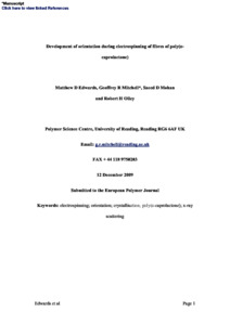 Edwards, M. D., Mitchell, G. R., Mohan, S. D. and Olley, R. H. (2010) Development of orientation during electrospinning of fibres of poly(ε-caprolactone). European Polymer Journal, 46 (6). pp. 1175-1183. ISSN 0014-3057 doi: 10.1016/j.eurpolymj.2010.03.017