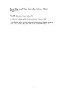 This article examines the superficial and deep ethical and moral dilemmas confronting ‘insider’ researchers which we term external and internal ethical engagement. External ethical engagement refers to the traditional, easily identifiable ethical issues that insider researchers attend to by submitting their application for ethical approval to their institution’s internal review board. Internal ethical engagement relates to the deeper level ethical and moral dilemmas that insider researchers have to deal with once ‘in the field’ linked to on-going personal and professional relationships with participants, insider knowledge, conflicting professional and researcher roles, and anonymity. By reviewing the literature in this area and drawing on the authors’ experiences of undertaking interpretive studies at institutions where they were members of staff, we explore these concepts and examine the implications for insider researchers. Keywords: insider research; ethics; professional relationships; anonymity; access