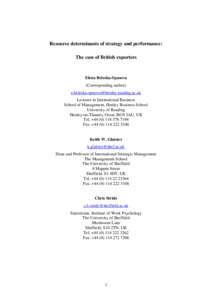 Beleska-Spasova, E., Glaister, K. W. and Stride, C. (2012) Resource determinants of strategy and performance: the case of British exporters. Journal of World Business, 47 (4). pp. 635-647. ISSN 1090-9516 doi: 10.1016/j.jwb.2011.09.001