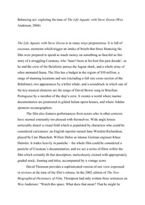 This paper provides an analysis of The Life Aquatic in the context of debates around tone, irony, the Smart Film, the New Sincerity and the Quirky. It argues that Anderson is one of a small but significant number of filmmakers to escape from the indiscriminate irony of fin de sie`cle cinema, and finds The Life Aquatic Aquatic a particularly interesting film in which to explore such matters because of its ready artifice, strong elements of pastiche and measuredly preposterous excesses. Offering a critical analysis, the paper balances an engagement with some of the systemic elements of the film’s tone with the detailed organisation of tonal elements in particular sequences.
