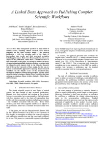 Shaon, A., Callaghan, S., Lawrence, B. ORCID: https://orcid.org/0000-0001-9262-7860, Matthews, B., Woolf, A., Osborn, T. and Harpham, C. (2011) A linked data approach to publishing complex scientific workflows. In: 2011 IEEE Seventh International Conference on eScience, 5-8 Dec 2011, Stockholm, pp. 303-310.