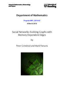 Grindrod, P. and Parsons, M. (2011) Social networks: evolving graphs with memory dependent edges. Physica A, 390 (2. pp. 3970-3981. doi: 10.1016/j.physa.2011.06.015
