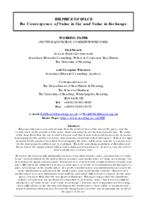 French, N. and Wiseman, G., (2002) The price of space: the convergence of value in use and value in exchange. Working Papers in Land Management & Development. 10/02. Working Paper. University of Reading, Reading. pp10.