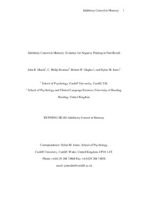 Marsh, J. E., Beaman, C. P. ORCID: https://orcid.org/0000-0001-5124-242X, Hughes, R. W. and Jones, D. M. (2012) Inhibitory control in memory: evidence for negative priming in free recall. Journal of Experimental Psychology: Learning, Memory & Cognitio, 38 (5). pp. 1377-1388. ISSN 1939-1285 doi: 10.1037/a0027849