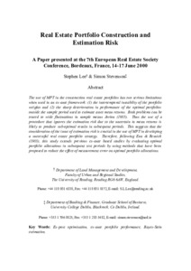 Lee, S. and Stevenson, S., (2000) Real estate portfolio construction and estimation risk. Working Papers in Land Management & Development. 08/00. Working Paper. University of Reading, Reading. pp24.