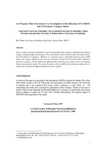 Lizieri, C., Satchell, S., Worzala, E. and Dacco' , R., (1997) Are property prices non-linear? An investigation of the behaviour of US REITs and UK property company shares. Working Papers in Land Management & Development. 05/97. Working Paper. University of Reading, Reading. pp21.