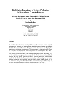Lee, S., (1998) The relative importance of sectors v's regions in determining property returns. Working Papers in Land Management & Development. 01/98. Working Paper. University of Reading, Reading. pp17.