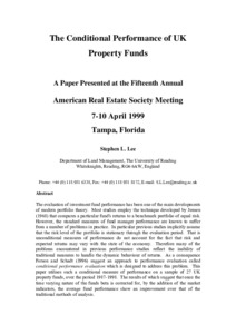 Lee, S., (1999) The conditional performance of UK property funds. Working Papers in Land Management & Development. 03/99. Working Paper. University of Reading, Reading. pp16.