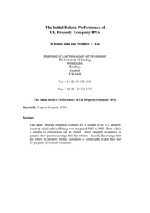 Sahi, W. and Lee, S. L., (1999) The initial return performance of UK property company IPOs. Working Papers in Land Management & Development. 05/99. Working Paper. University of Reading, Reading. pp13.
