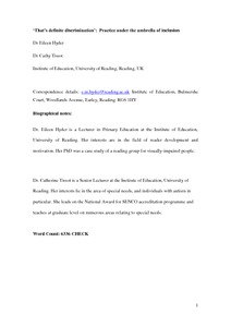 | Divisions | Arts, Humanities and Social Science > Institute of Education > Improving Equity and Inclusion through Education Interdisciplinary centres and themes > ASD (Autism Spectrum Disorders) Research Network |