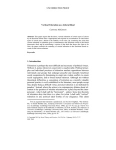 McKinnon, C. (2013) Vertical toleration as a liberal ideal. Social Theory and Practice, 39 (1). pp. 1-18. ISSN 0037-802X doi: 10.5840/soctheorpract20133911