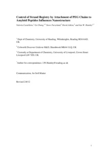 Control of strand registry by attachment of PEG chains to amyloid peptides influences nanostructure.