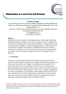 Tindall, M. J. (2012) Mathematics as a tool in the Life Sciences. In: HEA STEM Annual Conference - Biological Sciences Strand, 12-13 April, Imperial College, London.