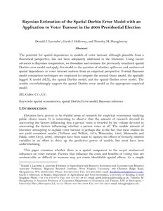 Bayesian estimation of the spatial Durbin error model with an application to voter turnout in the 2004 presidential election.