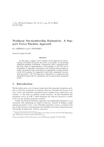 Keesman, K. J. and Stappers, R. (2004) Nonlinear set-membership estimation: a support vector machine approach. Journal of inverse and ill-posed problems, 12 (1). pp. 27-42. ISSN 1569-3945 doi: 10.1515/156939404773972752