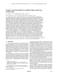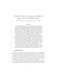 Trends in Austral jet position in ensembles of high- and low-top CMIP5 models.