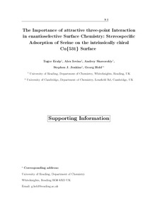 Eralp, T., Levins, A., Shavorskiy, A., Jenkins, S. J. and Held, G. (2012) The importance of attractive three-point interaction in enantioselective surface chemistry: stereospecific adsorption of serine on the intrinsically chiral Cu{531} surface. Journal of the American Chemical Society, 134 (23). pp. 9615-9621. ISSN 0002-7863 doi: 10.1021/ja210499m