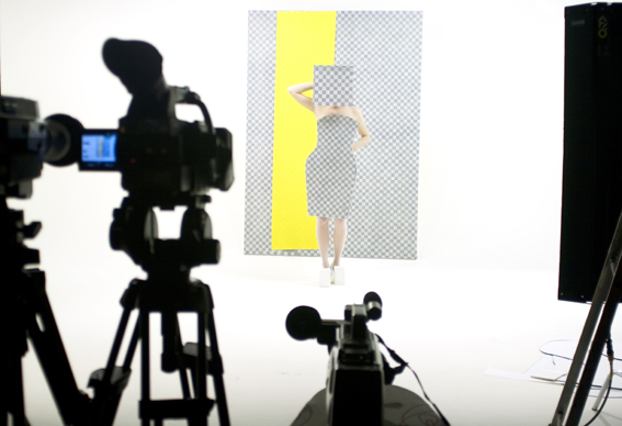 Prêt-à-Médiatiser by House of POLLYFIBRE is a performance/film that takes the fashion show catwalk as a site for exploration, with a focus on the dialogue between liveness and mediatisation. The performance showcases a clothing collection that has been designed to be documented and thus is challenged in the context of the live event. Motivated by the 2-dimensionality and biased perspective of mediated images such as magazine photography, social network profiles images and the surfaces of digital interfaces, the garments are one sided and obstruct the models in their attempt to play out familiar fashion poses, unless they align themselves 'correctly' for the lense. There is material metaphor and wordplay throughout, for example the clothing pieces are made from interfacing fabrics that are physically cut, pasted and layered to create the rigid flat silhouettes. The performance is accompanied by live sound created by tools of the fashion industry (including scissors and camera clicks) that have been adapted and amplified to be used as instruments. The audience and press are invited to document the live event and the subsequent film is made using footage collated from the crew, the audience and the official press