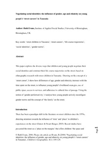 Negotiating social identities: the influence of gender, age and ethnicity on young people’s ‘Street Careers’ in Tanzania.